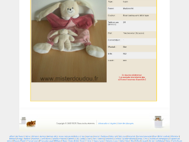 Recherche doudou couverture de massage mouton Nature & Découvertes (2005) – Mon doudou d’enfanceDoudou perdu Privas (Auvergne-Rhône-Alpes) 17/08/2025Bonjour, Je tiens à préciser que ce n’est pas un doudou perdu récemment, mais bien mon doudou d’enfance que je cherche à retrouver. L’objectif est d’en trouver un autre exemplaire pour préserver le mien, qui est aujourd’hui très abîmé après 20 ans à ... -